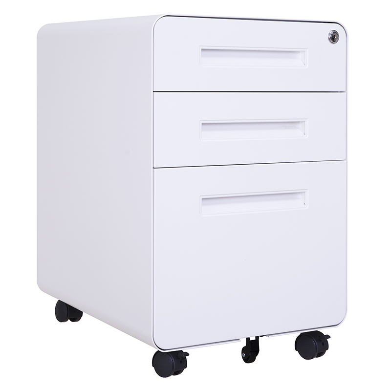 圆弧白面板白扣手活动柜