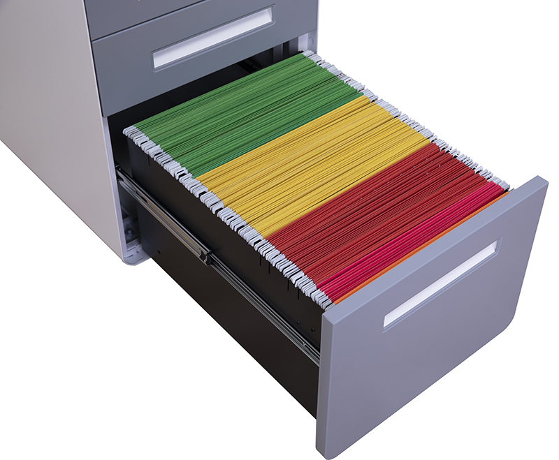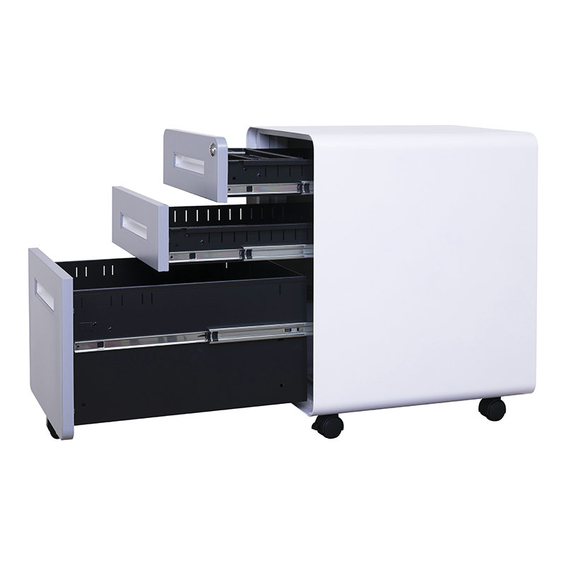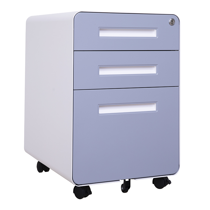 圆弧灰面板白扣手活动柜