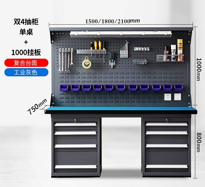 重型防静电工作台双4抽柜+双挂板