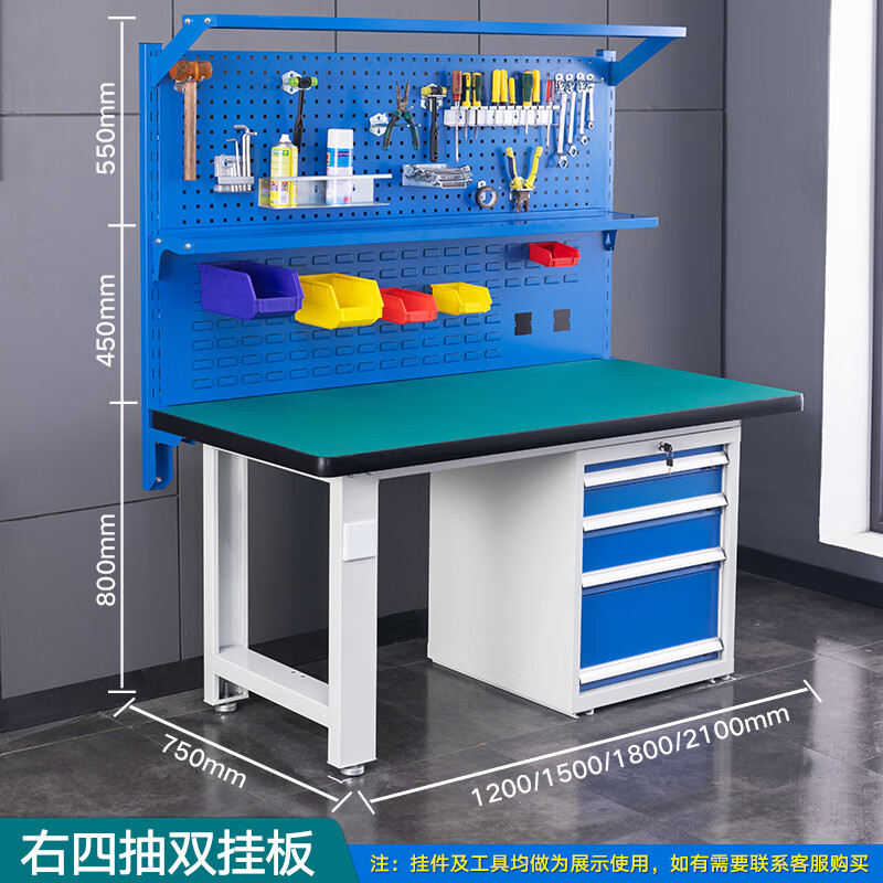 重型防静电工作台右4抽+双挂板
